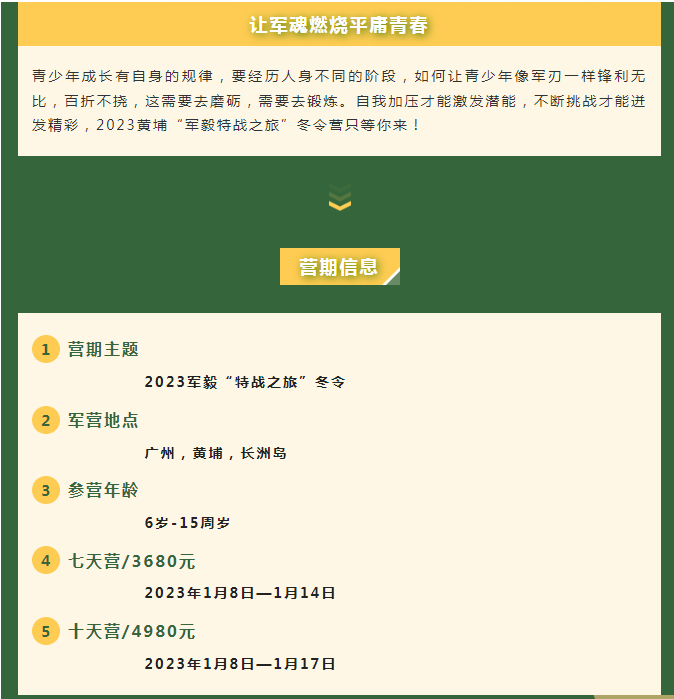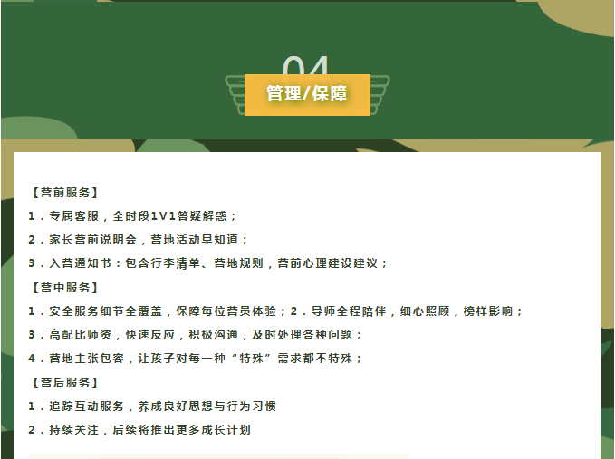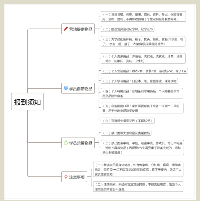 5.如入营前孩子有轻微病症,请务必告知带队老师,自备常用药品(交由带队老师管理)并告知相关药品详细名称及使用说明。